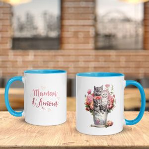 Mug Fête des Mères, avec chat et chaton Maine Coon (5 couleurs)