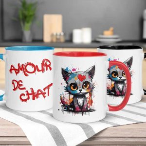 Mug humour Chat noir coloré (6 couleurs disponibles)