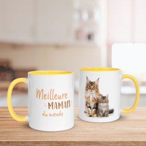 Mug Fête des Mères, avec chat et chaton Maine Coon (5 couleurs)