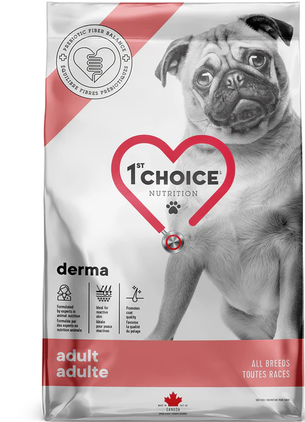 La formule DERMA sans grains a été conçue pour aider les chiens dont la peau est réactive ou hypersensible. Spécialement élaborée à partir d’ingrédients reconnus pour diminuer l’inflammation cutanée, les irritations et les démangeaisons, cette formule crée une barrière protectrice contre les agresseurs de l’environnement. La formule DERMA rend également le poil incroyablement lustré et soyeux! De plus, cette formule renferme notre Équilibre de Fibres Prébiotiques. Grâce à un savant mélange de fibres solubles et insolubles, chaque croquette offre un apport optimal en fibres prébiotiques contribuant à nourrir la flore intestinale. Pour une meilleure santé digestive au quotidien, un système immunitaire fort et une vitalité accrue.