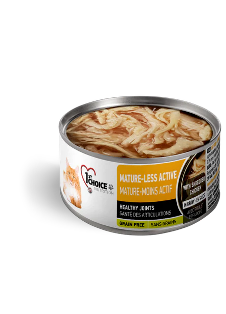 1st Choice Pâté en sauce pour chat Mature-Moins Actif avec poulet effiloché (85g)