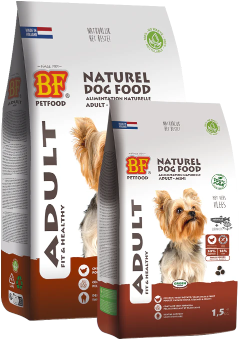 Les croquettes BF Petfood Mini Adult Mini sont spécialement conçues pour les petits chiens. Élaborées avec des ingrédients naturels de haute qualité, elles offrent une teneur élevée en protéines grâce au poulet frais et déshydraté, sans céréales. Cette alimentation complète et savoureuse facilite la digestion tout en soutenant la santé de la peau, du pelage, du système immunitaire, des articulations et des dents. L’ajout de prébiotiques améliore le transit intestinal, diminuant le volume et les odeurs des selles. Adaptées aux chiens actifs comme aux plus calmes, ces croquettes répondent parfaitement à leurs besoins nutritionnels.