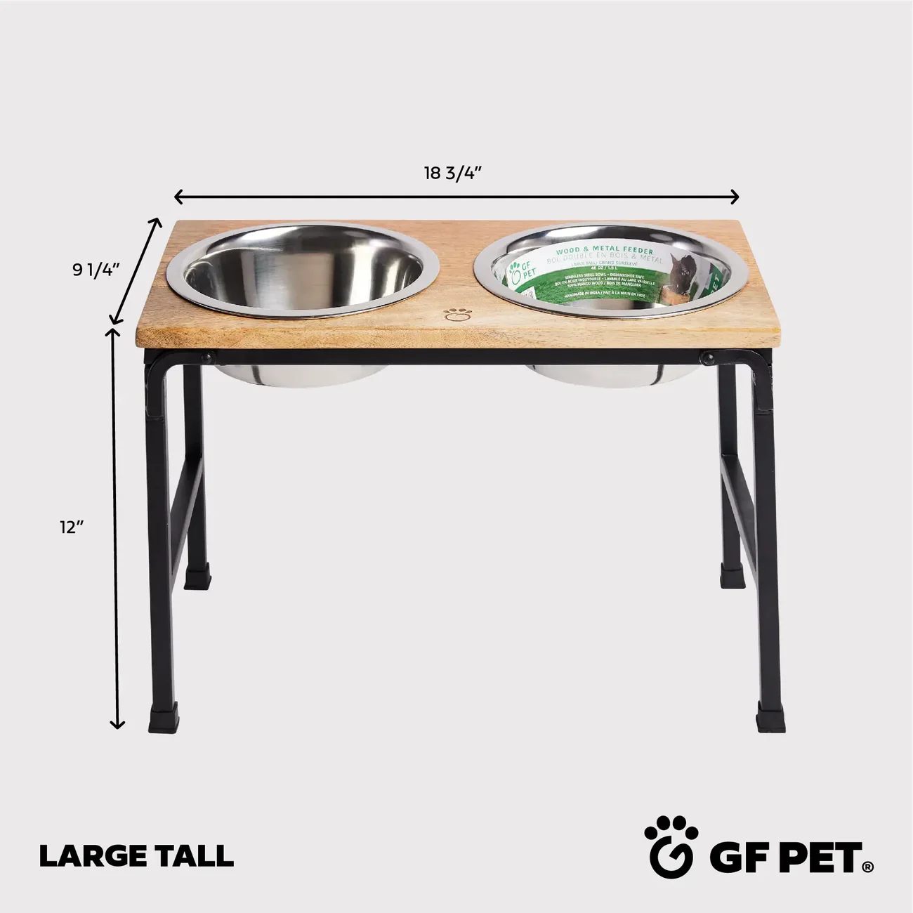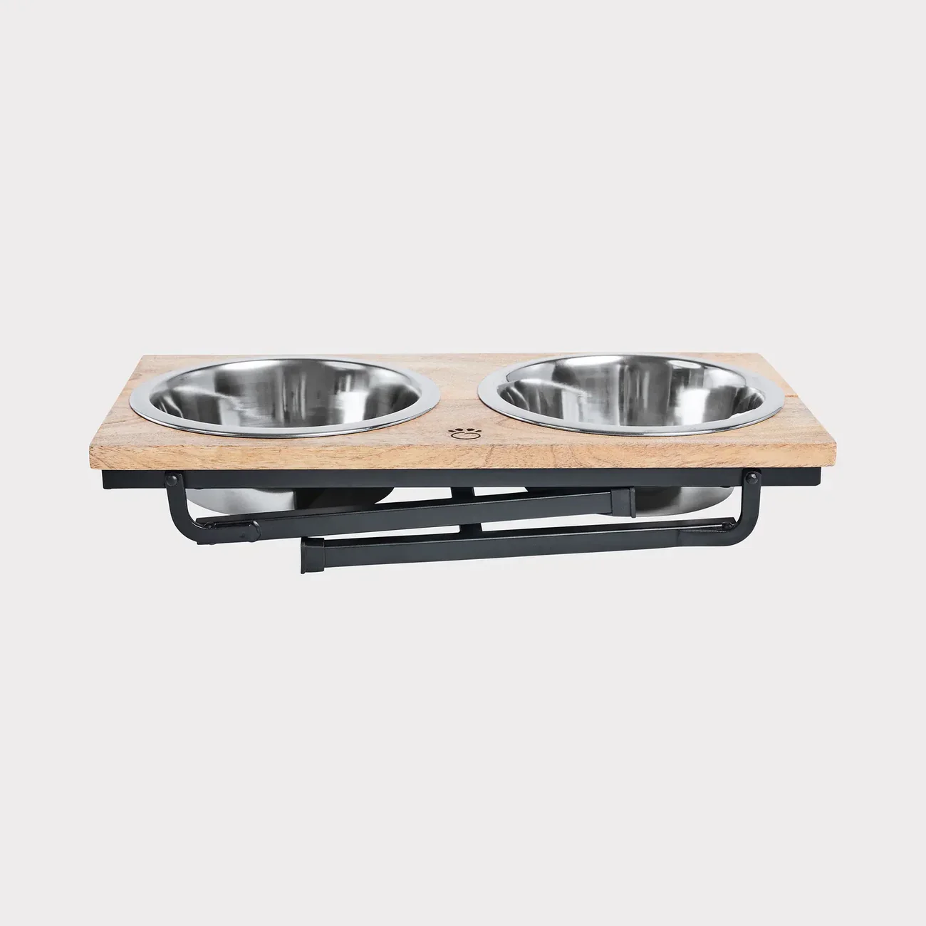 Bols en Acier Inoxydable avec Support Surélevé en Bois et Métal. 2 Bols de