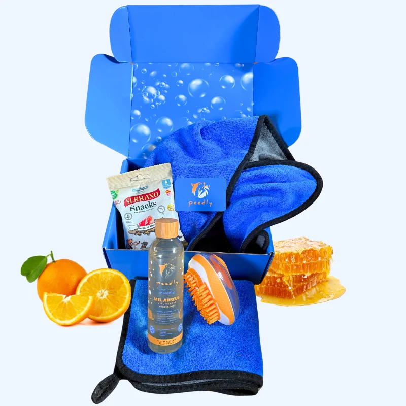 La Box Mel-Aureus, c’est bien plus qu’un coffret de toilettage : c’est la première box de soin naturel, complète et sensorielle, pensée pour réinventer l’expérience du bain canin avec douceur, efficacité… et émotion.