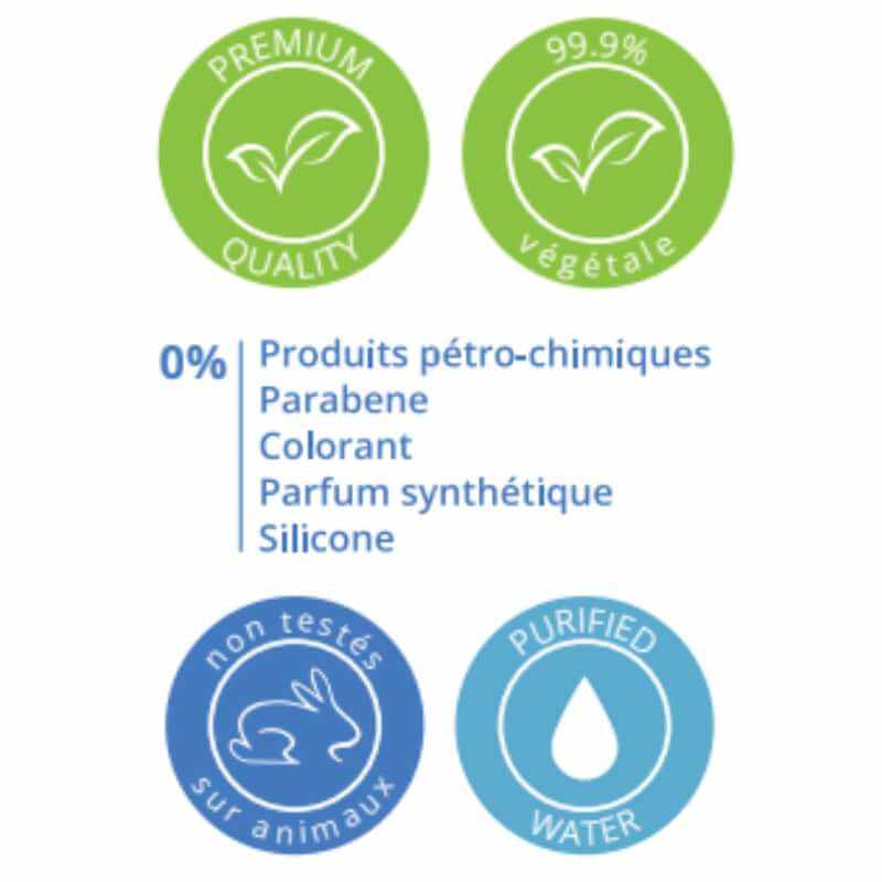 • Base lavante végétale triple (saponaire, betterave sucrière, aloe vera) : mousse onctueuse, nettoyage doux, haute tolérance cutanée