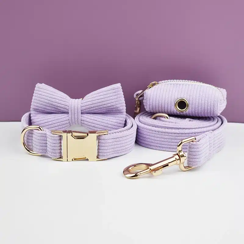 Le collier est équipé d’une boucle en laiton solide, assurant une fermeture sécurisée et facile à ajuster pour un confort maximal de votre chien. La laisse assortie, dotée d’un mousqueton en acier, garantit un contrôle optimal lors des promenades tout en complétant harmonieusement le look. Le velours côtelé doux offre non seulement un design original mais aussi une sensation agréable autour du cou de votre animal, évitant ainsi toute irritation.