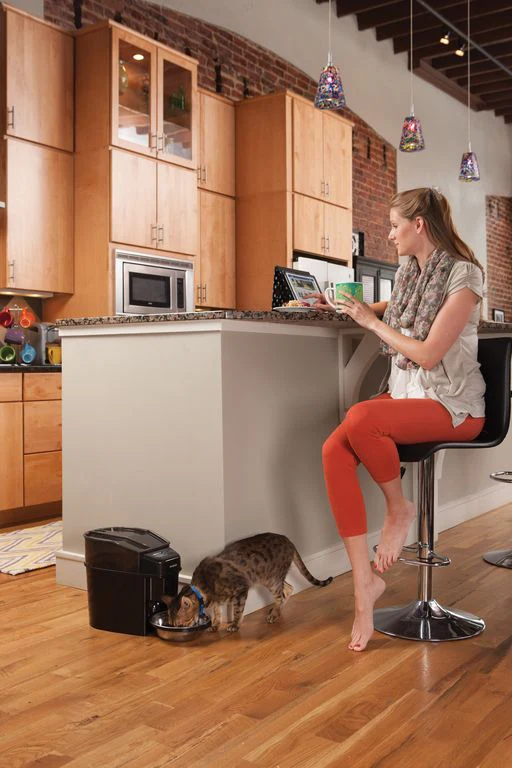 Avec son design épuré et des fonctions avancées, le distributeur digital de nourriture pour animaux domestiques Healthy Pet Simply Feed vous offre une grande tranquilité d’esprit en sachant que votre animal est nourri, que vous soyez chez vous, au travail, ou en déplacement. Avec les programmes de distribution pour chat ou chien, comportant des repas prédéfinis distribués deux fois par jour, la mise en place est très rapide. L’option utilisateur vous permet de personnaliser votre programme de distribution avec un maximum de 12 repas par jour, vous offrant la meilleure manière de gérer les repas de votre animal. Le réservoir contenant jusqu’à 2.4 kg de croquettes sèches ou semi-humides est transparent, permettant ainsi de contrôler le niveau de nourriture d’un seul coup d’oeil. Le Healthy Pet Simply Feed facilite la bonne gestion du poids de votre animal en proposant une routine de repas, contôlés par portion, pour un animal plus sain et plus heureux !