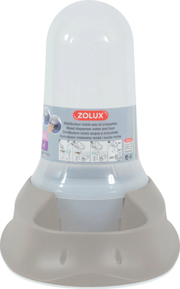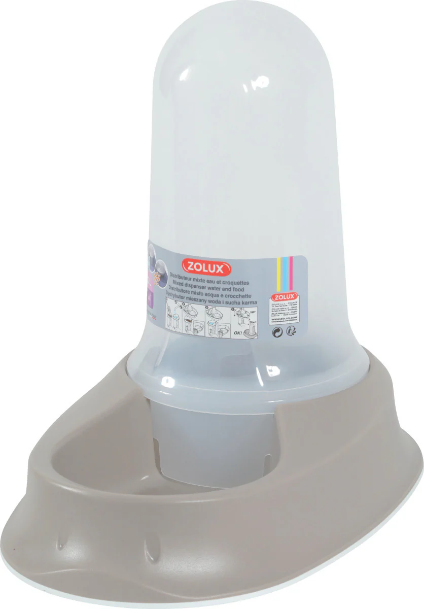 Ultra pratique, ce distributeur se transforme en distributeur de croquettes ou d’eau en tournant tout simplement la cloche.