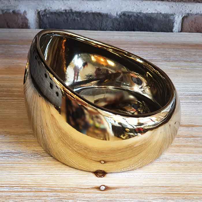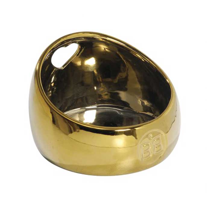 Gamelle pour chat en céramique recouverte de peinture or.