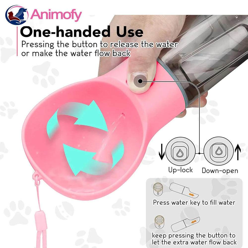 Le joint hermétique en gel de silice et la structure de verrouillage à l’intérieur du corps de la bouteille peuvent empêcher efficacement les fuites d’eau. La large auge en forme de O épouse la structure de la gueule du chien pour empêcher l’eau de s’écouler. Facile à utiliser – Appuyez légèrement sur le bouton d’eau pour remplir l’eau et relâchez pour arrêter l’eau. Il suffit d’appuyer sur un bouton pour permettre un retour d’eau supplémentaire dans la bouteille, ce qui convient parfaitement à une utilisation à une main. Bouteille d’eau multifonctionnelle pour chien – Votre animal de compagnie peut profiter d’une eau et d’une nourriture propres et sûres en déplacement ou en promenade.