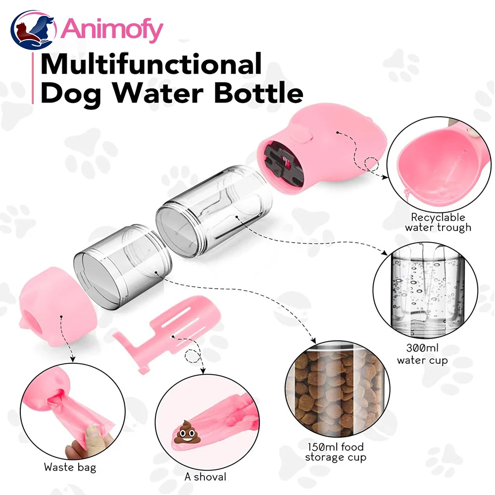 Type: Bouteille d’eau portable pour chien Couleurs disponibles : bleu, vert, rose, jaune Capacité en eau : 300 ml (10 oz) / 500 ml (17 oz) Capacité alimentaire : 150 ml / 5 oz Dimension: 300 ml: 97*94*267mm 500 ml : 97*94*345mm Poids : 300 ml-255 g / 500 ml-302 g Matériau de la bouteille : PC Matériau de l’auge : ABS