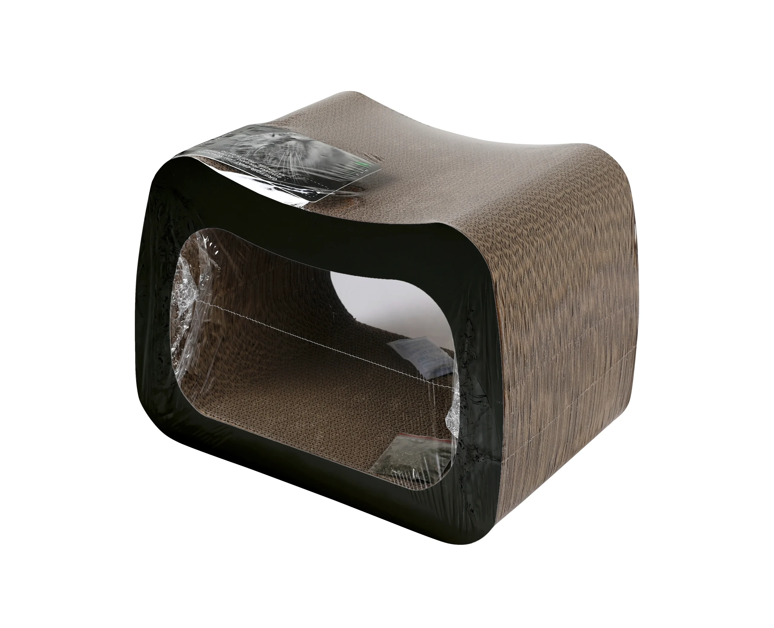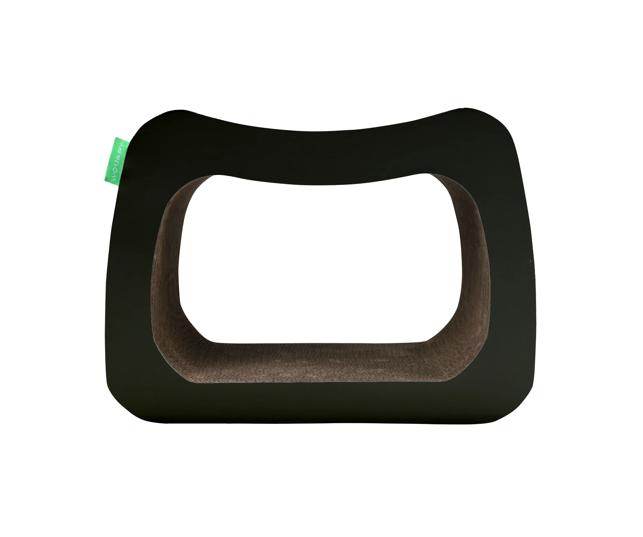 Griffoir pour chats alliant style et confort tout en entretenant leurs griffes. En matière MDF et carton ondulé très résistant Un design moderne très épuré. Couleur : noir. Dimensions : 38 x 28 x 30 cm.