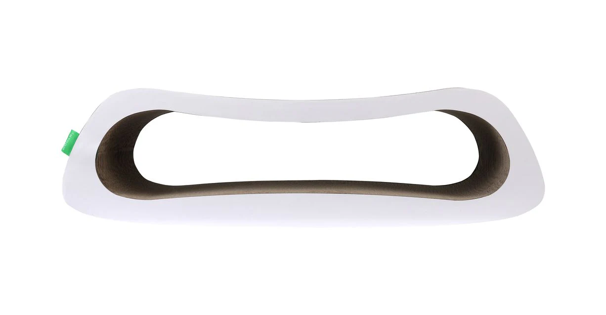 Ce griffoir très design avec ses lignes épurées est confectionné à partir de carton reçyclé.
