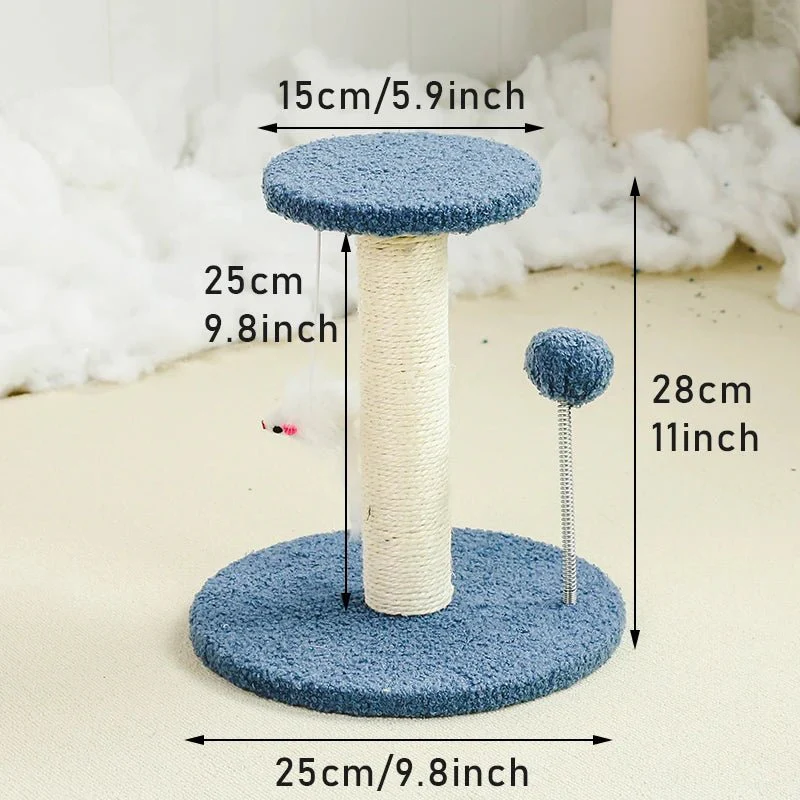 La colonne est enveloppée de corde de chanvre naturel, solidement enroulée pour résister à l’usure intensive.