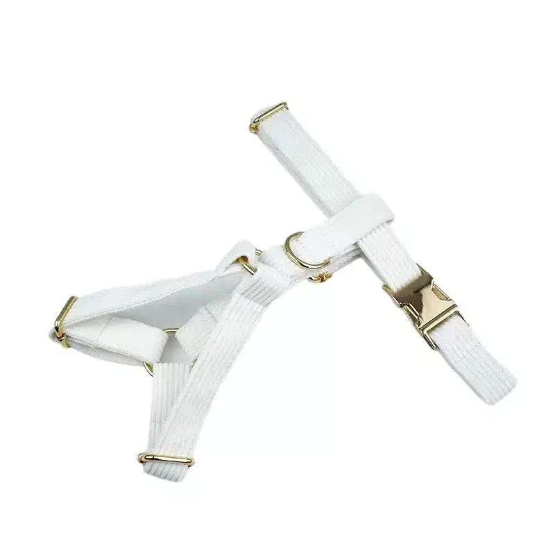 Harnais chien à personnaliser en velours côtelé blanc