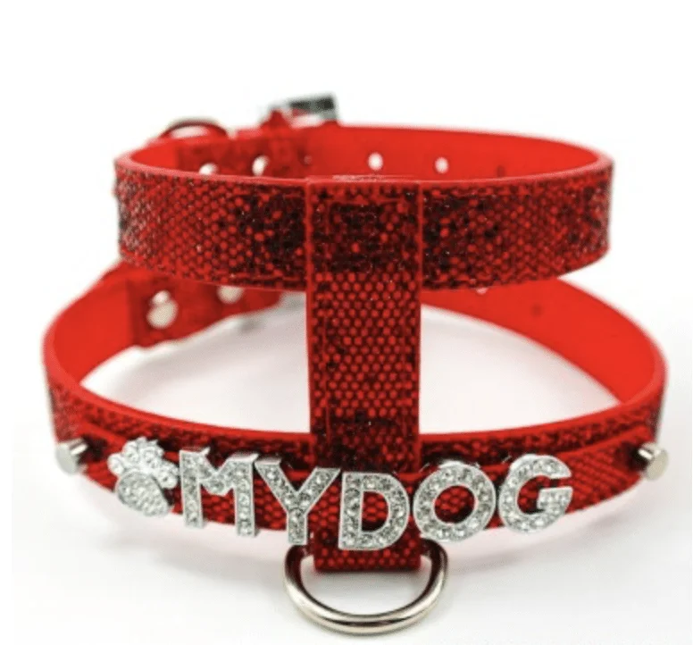 Quels sont les matériaux et techniques utilisées dans la fabrication d’un harnais pailleté pour chien personnalisé ?