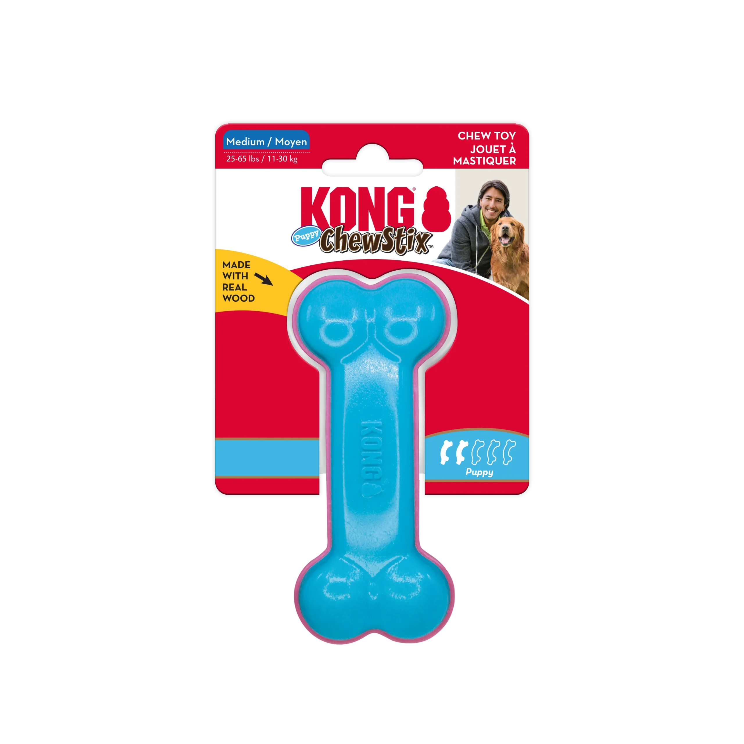 L’os KONG ChewStix Puppy Curved Bone est une solution durable, plus sûre que les bâtons habituels, qui comble les besoins de mastication des chiots en pleine poussée dentaire. En bois véritable et à l’odeur alléchante de noix de coco, ces ChewStix durables résistent aux longues sessions agréables de mastication, comblant l’instinct et renforçant un comportement convenable. Remplissez la rainure de KONG Stuff’N pour prolonger le jeu. Placez l’os au congélateur pour apaiser les gencives douloureuses. Les bords arrondis sûrs et la texture prolongent l’amusement et aident à nettoyer les dents.