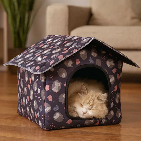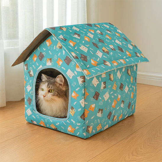 Notre maison pour chat est fabriquée en tissu Oxford imperméable doublé d’un revêtement intérieur ultra-confortable.