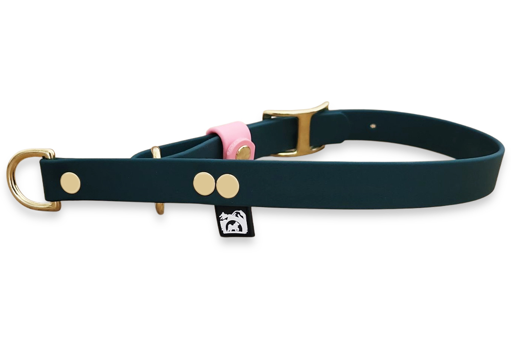 Martingale à languette plate, réglable, confectionnée à la main en France en Beta BioThane ®.