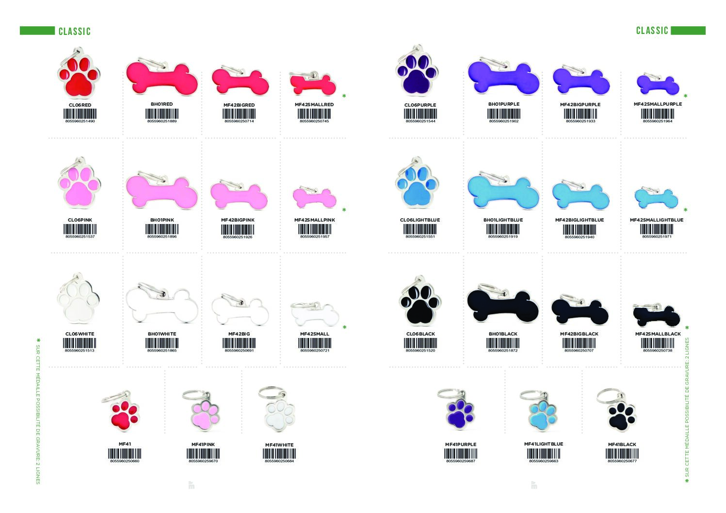 Vous pourrez indiquer ce que vous souhaitez sur une face, par exemple le nom de votre animal et un ou deux numéros de téléphone et pourquoi pas utiliser une médaille sur votre porte clefs également!