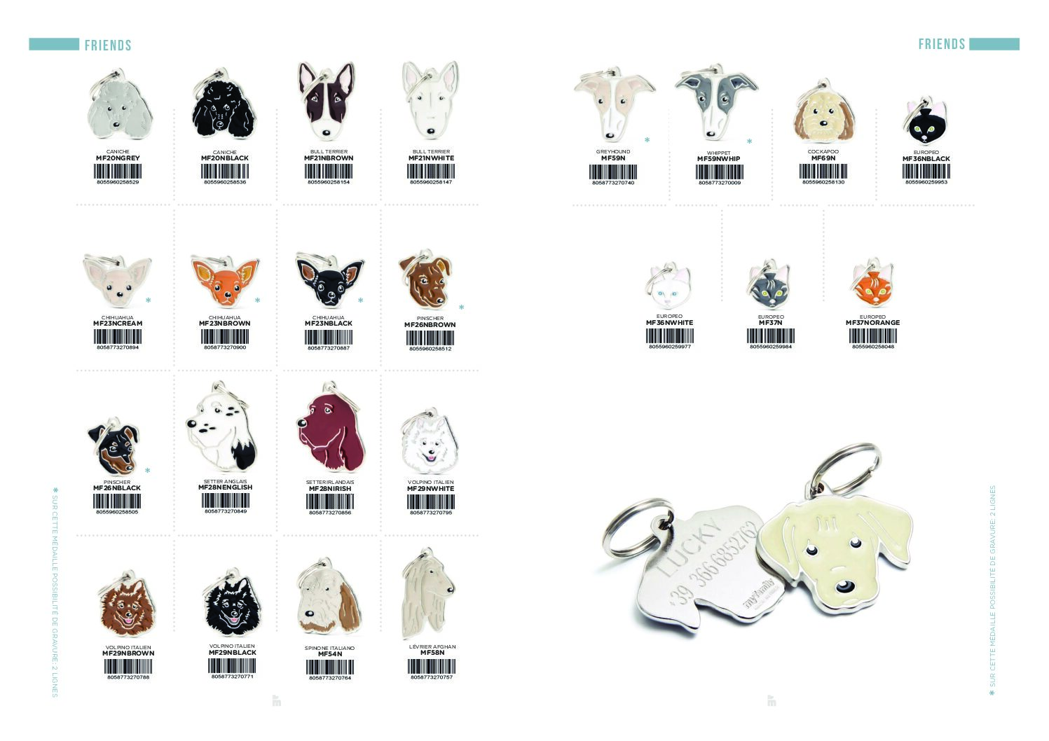 Vous pourrez indiquer ce que vous souhaitez sur une face, par exemple le nom de votre animal et un ou deux numéros de téléphone et pourquoi pas utiliser une médaille sur votre porte clefs également!
