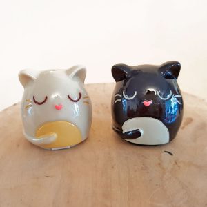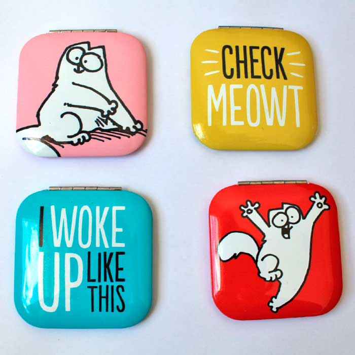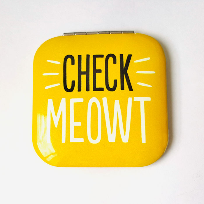 - Jaune : « Check meowt » = « Check me out » (traduction : regarde moi !). Jeu de mot autour du Meow, le Miaou anglais…
