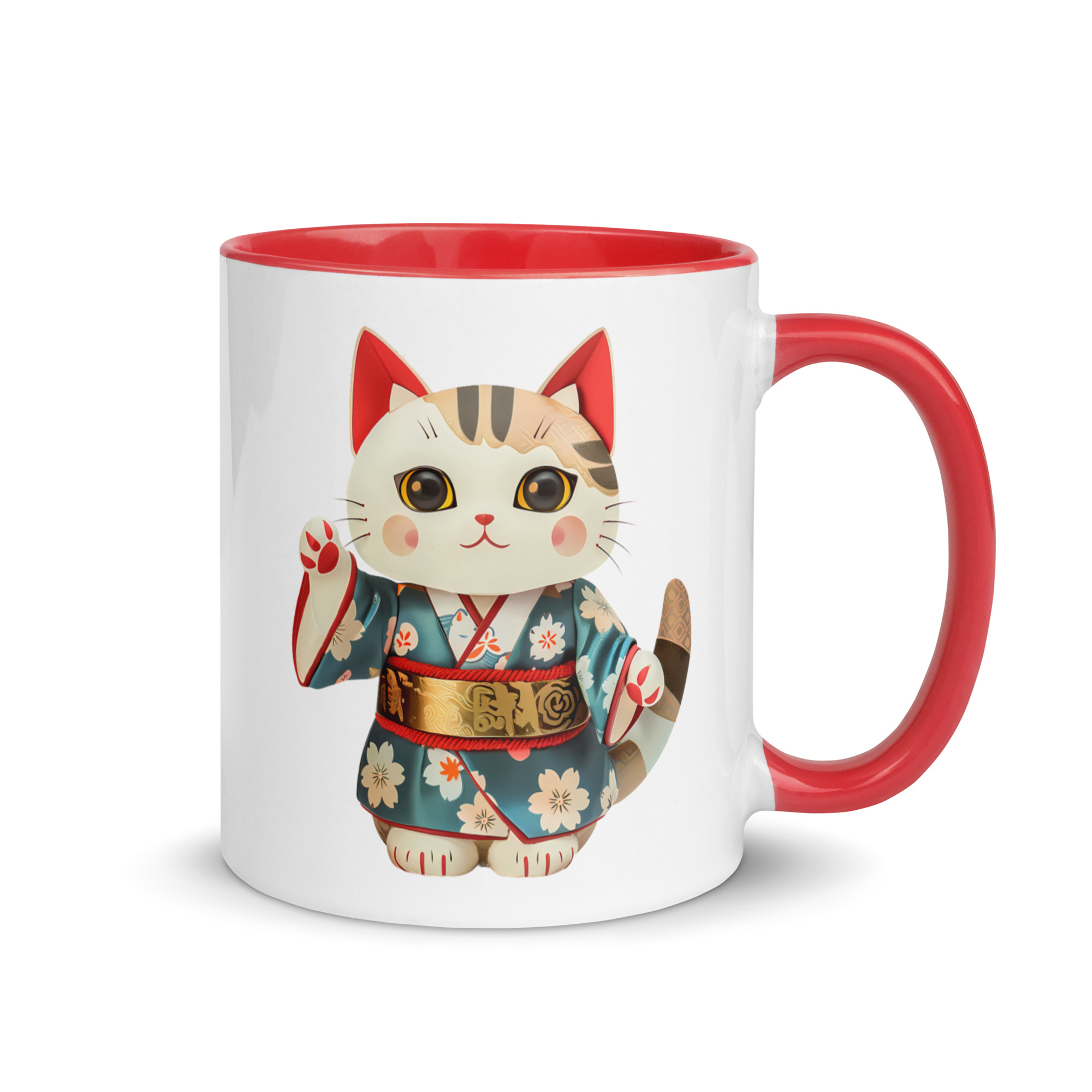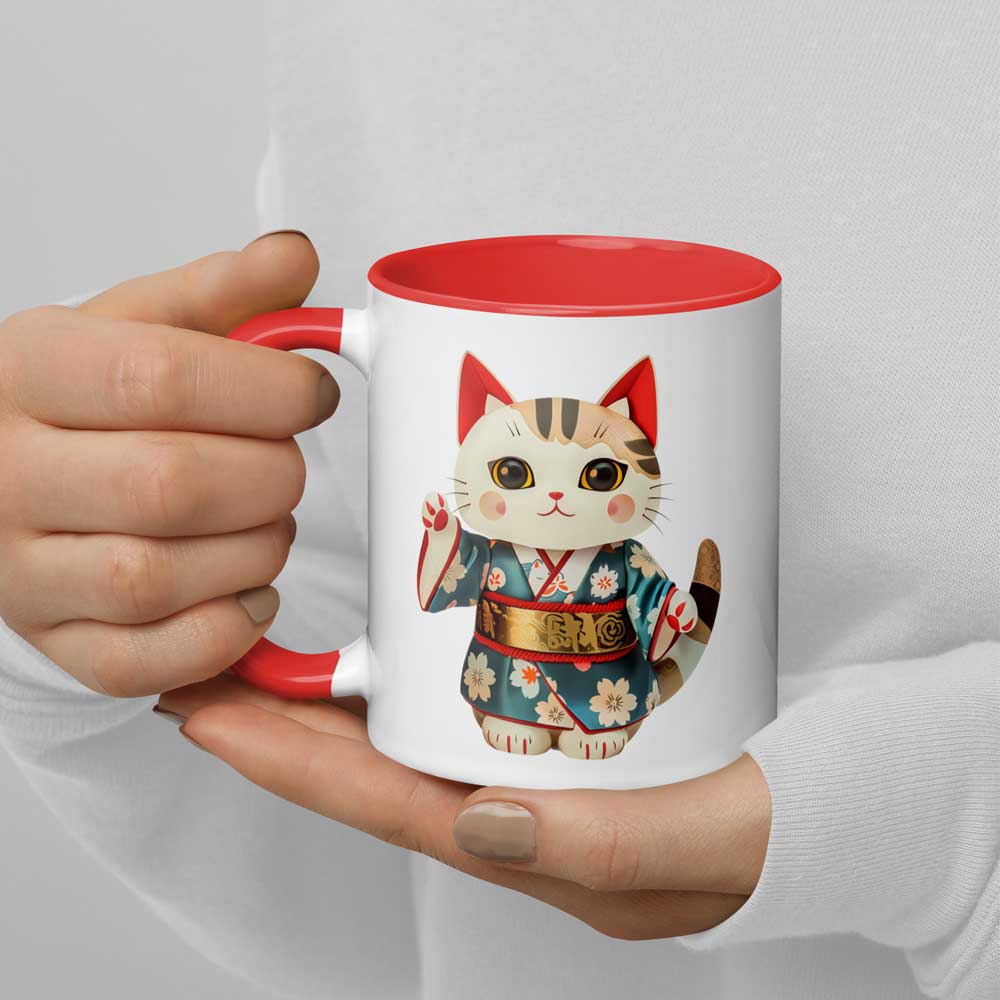 Mug Maneki-neko rouge en costume japonais