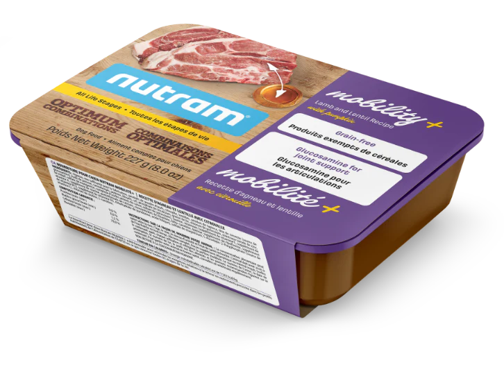 La nourriture pour chiens Nutram Mobilité+ est riche en agneau, une source de protéines de haute qualité qui fournit des acides aminés essentiels favorisant la force musculaire, et en huile de saumon, riche en acides gras oméga-3 fournissant des propriétés anti-inflammatoires qui soutiennent et améliorent la mobilité de votre animal de compagnie.
