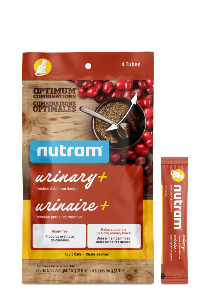 Les gâteries Nutram Urinaire+ pour chats favorisent la santé de la vessie grâce à une combinaison spéciale de canneberges et de graines de céleri. Les canneberges, un acidifiant naturel, et les graines de céleri, un diurétique efficace pour maintenir des niveaux de fluides sains, travaillent ensemble avec un pH approprié et un faible taux de phosphore pour soutenir le bon fonctionnement de la vessie.