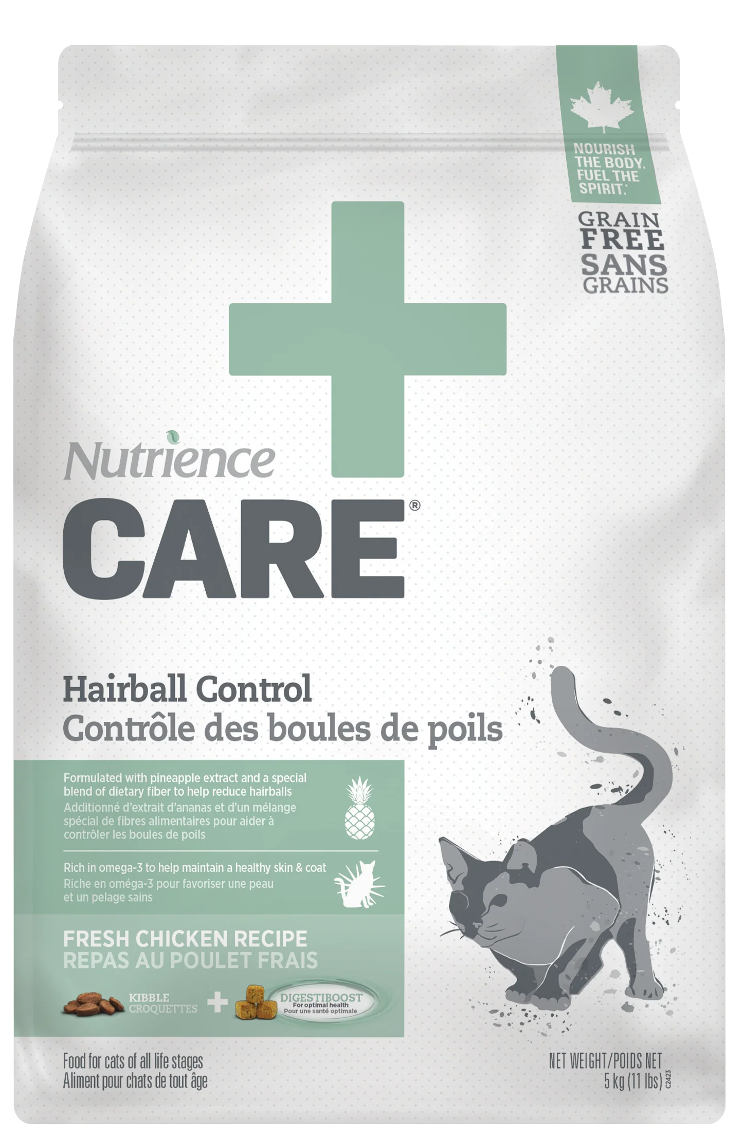 L’aliment Nutrience CareMD Contrôle des boules de poils pour chats respecte les exigences nutritionnelles stipulées dans le tableau Cat Food Nutrient Profiles de l’AAFCO pour toutes les étapes de vie.