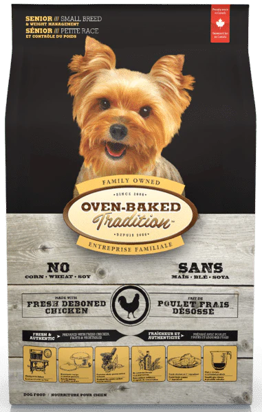 Notre nourriture pour chien sénior et contrôle du poids de petite race est lentement cuite au four à basse température.