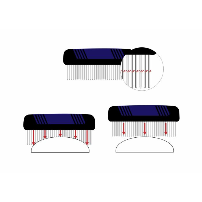 Pour les chats (Persan, Main coon, Norvégiens, British, Selkirk…) et les chiens à poils long avec du sous poil. Pénètre en profondeur en douceur avec ses dents rotatives et rétractables. ses dents coniques facilitent l’élimination du sous poil mort et des noeuds de façon plus douce que des dents fixes.