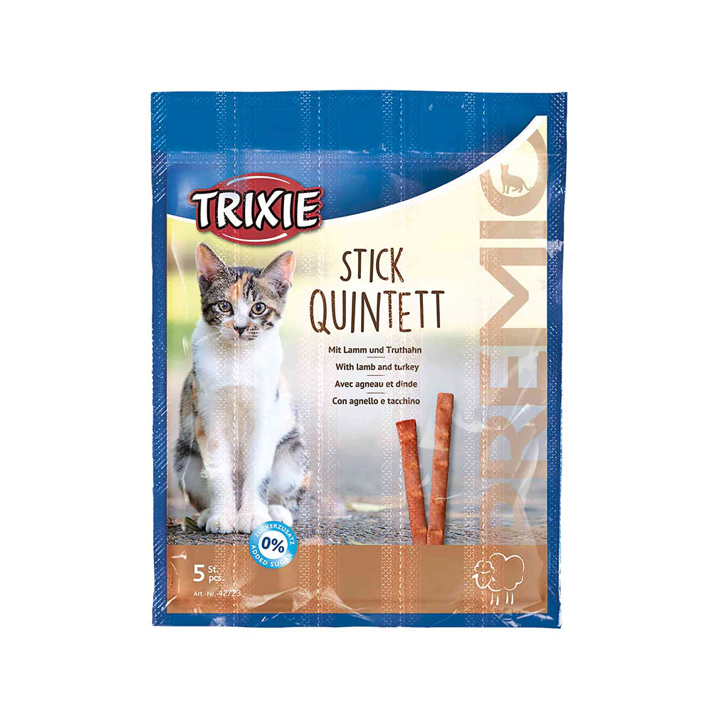 Les bâtonnets TRXIE PREMIO QUINTET Volaille et Foie sont de savoureuses friandises, sans sucre ajouté, pour nos félins préférés. Chaque stick de 5 grammes est emballé individuellement.