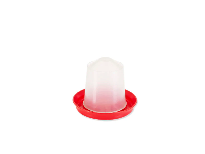 Réservoir d’eau à utiliser au sol, contenant pour les volailles. Cet abreuvoir est fabriqué à partir de plastique durable et peut être laissé sur le sol. Remplir le corps du récipient d’eau en le tenant à l’envers. Remettez le couvercle en place, puis retournez-le. Le rebord se remplira d’eau tant que le récipient contient de l’eau et qu’il n’y a pas de trous.