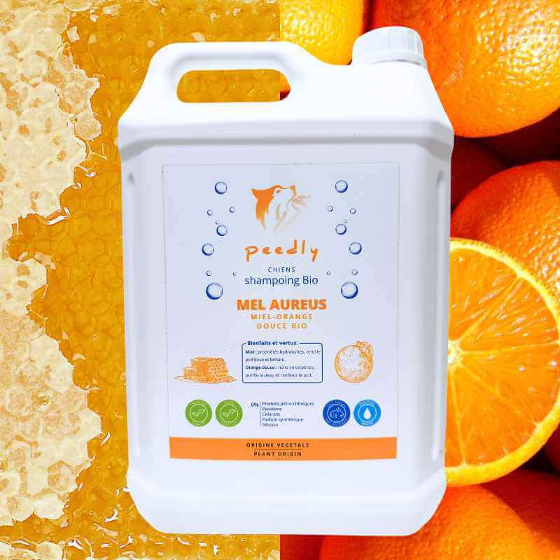 Mel-Aureus est un shampoing professionnel 99,9 % naturel et bio Premium, conçu pour les chiens à peau sèche, sensible ou sujette aux irritations cutanées.