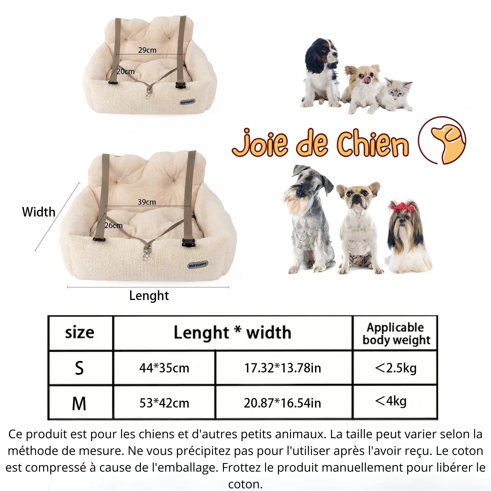 Notre siège s’adapte parfaitement à la morphologie de votre chien ainsi qu’à la configuration de votre véhicule. Disponible en plusieurs tailles, il convient aussi bien aux petites races qu’aux chiens de taille moyenne.