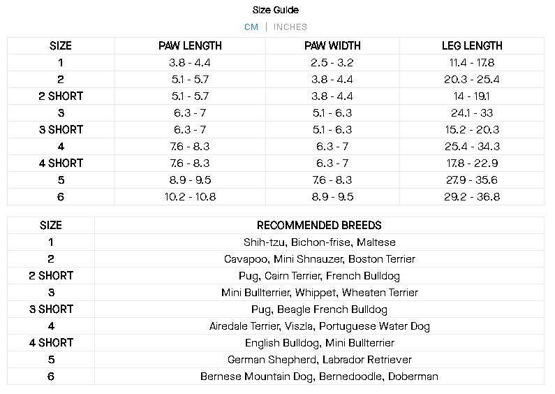Disponible en longueurs de jambes régulières et courtes pour garantir un ajustement sûr sur une large gamme de tailles de chiens. Sur la base de nos recherches et de nos séances d’ajustement, nous avons trouvé la longueur de jambe COURTE idéale pour les races de chiens telles que les carlins, les bouledogues français et les beagles, et la longueur de jambe RÉGULIÈRE idéale pour les races de chiens telles que les caniches, les griffonnages, les Golden Retrievers et les Dobermans. La taille de chaque chien est différente, nous vous recommandons donc de mesurer votre chien et de vous référer au tableau des tailles pour déterminer la taille de votre chien.