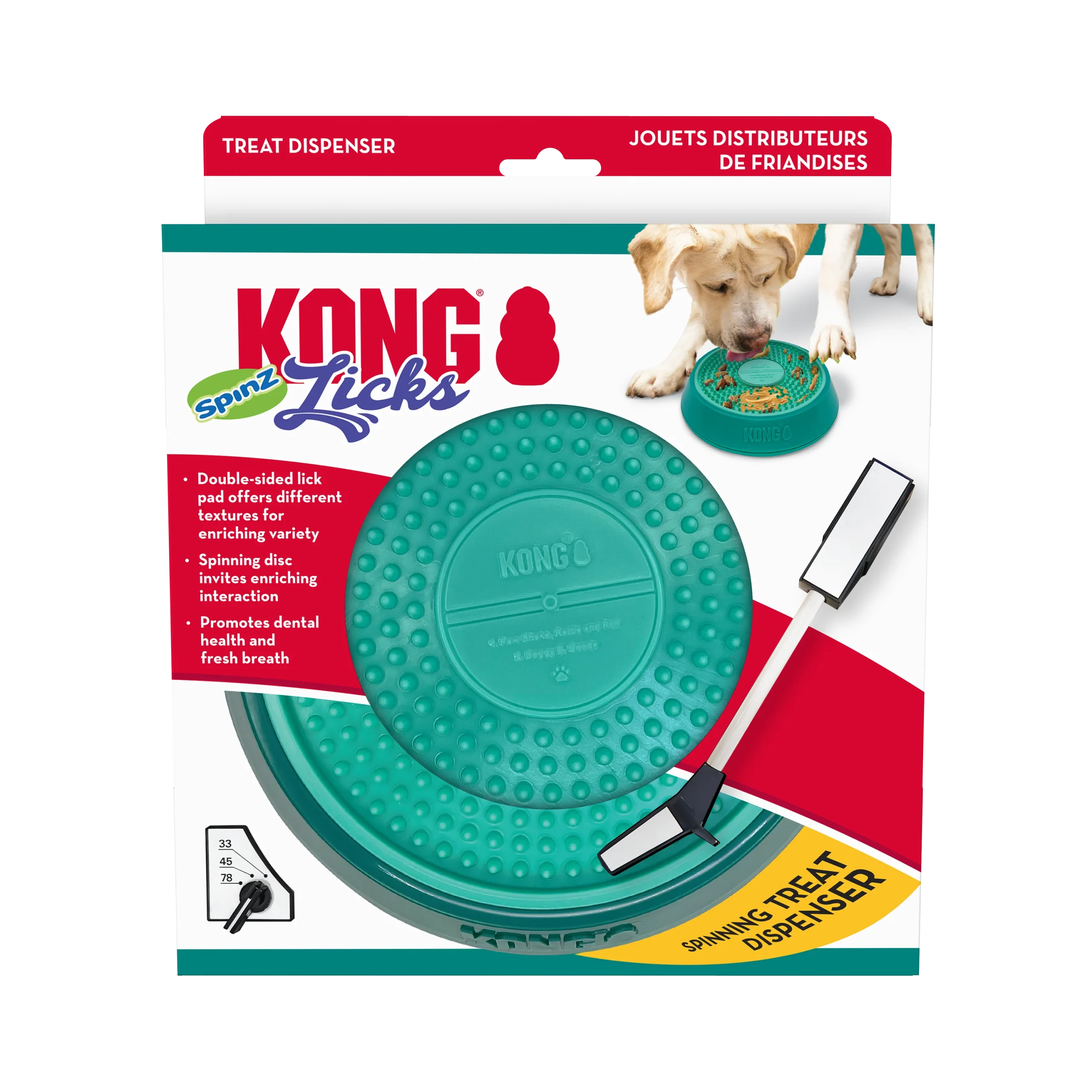 Le coussin rotatif et texturé du jouet KONG Licks Spinz contient de la nourriture ou de la pâte à friandises. Il invite, de ce fait, vos chiens D.J. à venir le lécher, ce qui leur fait libérer des hormones de bonne humeur tandis qu’ils s’amusent comme des petits fous. Le tapis à double face offre deux textures différentes pour plus de variété. Le tapis est, par ailleurs, amovible, ce qui permet un nettoyage facile. De plus, s’amuser avec ce jouet en forme de tourne-disques permet à vos chiens de nettoyer leur langue, favorisant ainsi une bonne hygiène bucco-dentaire et préservant une haleine fraîche. La base antidérapante maintient le jouet en place.