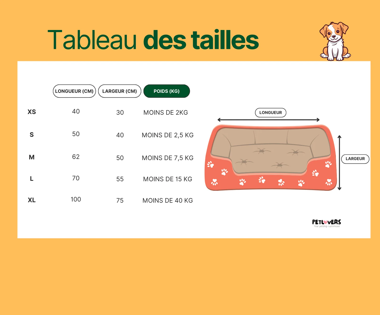 Tailles disponibles pour le tapis d’été pour chien rafraîchissant