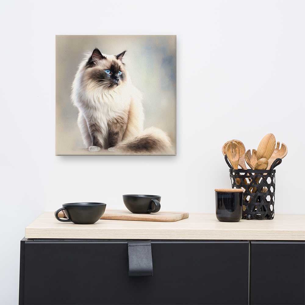 Si vous aimez décorer les murs de votre intérieur avec soin et que vous aimez les chats, voici une superbe impression sur toile d’un chat Sacré de Birmanie.
