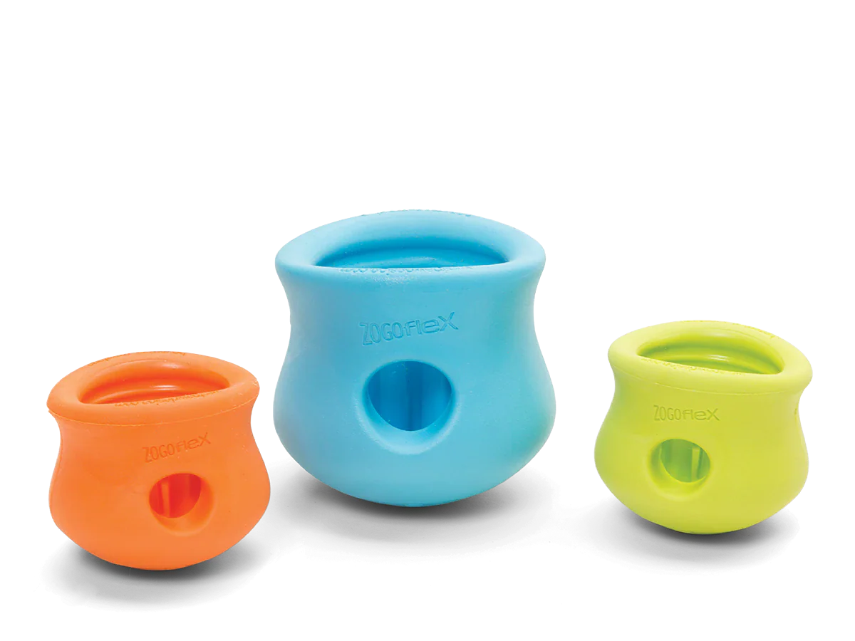 Notre puzzle et friandise personnalisable le plus vendu est conçu pour être rempli des croquettes ou des friandises préférées d’un chien. Les « dents » intérieures douces et arrondies de Toppl contiennent une cavité profilée pour maintenir les friandises en place jusqu’à ce que votre chien les pousse. Pour changer le défi, connectez simplement le petit et le grand ensemble pour rendre Toppl encore plus difficile.