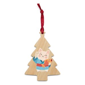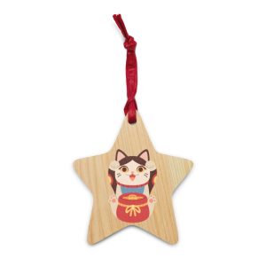 Déco sapin de noël Lucky Cat en bois de Hinoki
